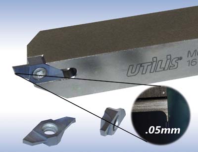 Genevieve Swiss Industries has introduced UTILIS Multidec 1600 series thin grooving and micro turning tools capable of work under .125" in diameter utilizing insert widths from thickness of human hair (.0019") up to .108" with cutting edge repeatability within .0004".