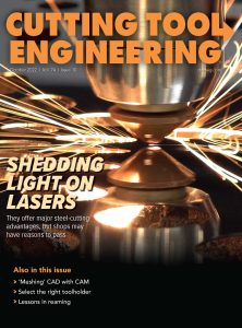 Evaluating options for automation New shape-memory alloy From CAD design to test-fire Ream on Thread milling logistically Beyond tried-and-true tool holding Shedding light on lasers All-in-one tool grinder Meshing CAD with CAM