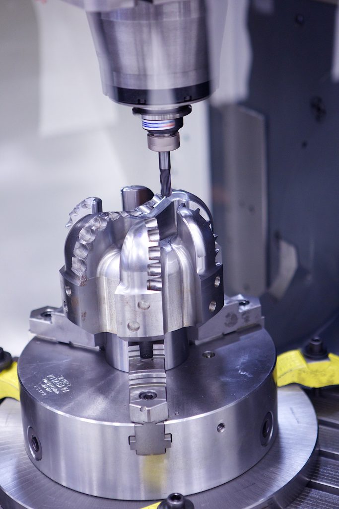 An oil field rock bit being machined on a DMU 50 with Siemens 840D sl CNC. Both high-speed roughing and precise 5-axis machining are possible on this small footprint, entry-level machine.