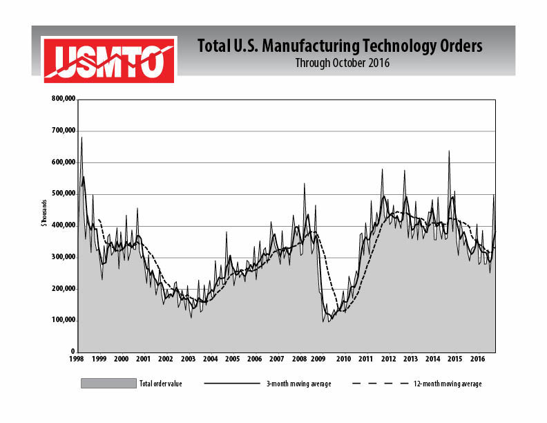While manufacturing technology sales were down in October compared to September (and the high order volume that came along with IMTS), the latest U.S Manufacturing Technology Report from AMT - The Association For Manufacturing Technology shows October sales were 0.2 percent higher than October 2015.