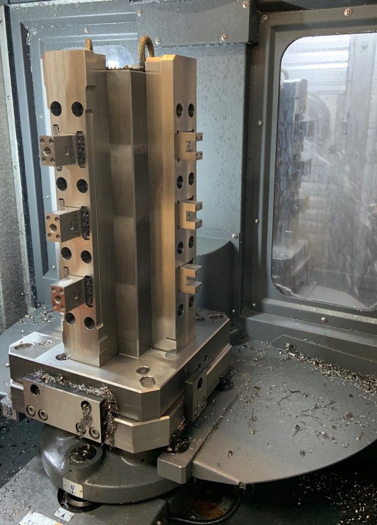 A tombstone compared to a vertical machine offers more productivity, said David Moore, an applications engineer at Method Machine. While a cycle runs and machines numerous parts, the operator can prepare the next tombstone to maximize production.