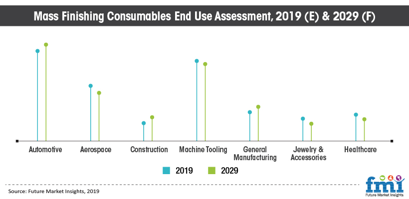 Sales of mass finishing consumables are primarily driven by the increasing demand for surface finishing from various end-use industries such as automotive, aerospace, and general and industrial engineering. As indicated in a new study, the global mass finishing consumables market is estimated to be valued at over US$180 million by the end of 2019, demonstrating moderate growth at a less than 5% CAGR during the forecast period, 2019 to 2029.
