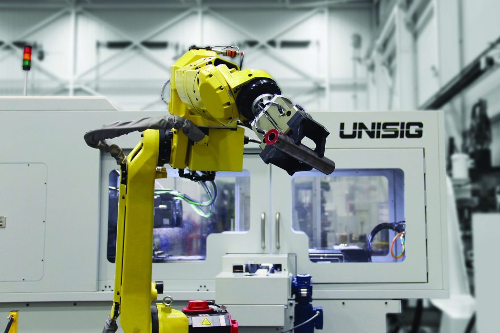 To enable fast one-piece-flow manufacturing, Unisig integrated the system via automation for in-feed, pick-and-place, conveyor loading and automatic clamping, which fed two lathes that turned the parts. The result was an effective work cell that produced more than 100 parts an hour, a dramatic financial and process improvement.