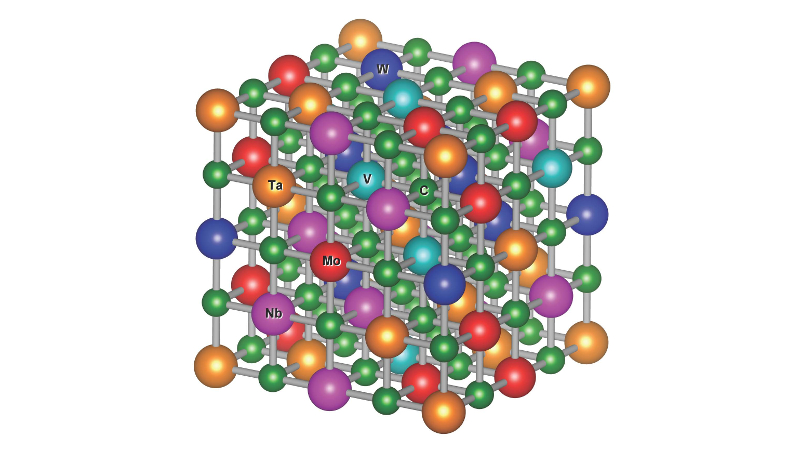 While the new carbides are all likely to have desirable industrial properties, one improbable combination stood out--a combination of molybdenum, niobium, tantalum, vanadium and tungsten called MoNbTaVWC5 for short.