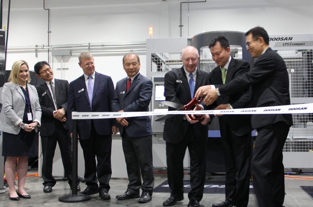 The sales, engineering and executive staff at Doosan Machine Tools America hosted a festive open house recently, celebrating the company's recently expanded Technical Center in Pine Brook, N.J. The company welcomed valued customers and its North American distributor network. The 3-day event served to introduce and confirm to attendees the support that Doosan offers from its Technical Center and its strength in developing new machine tool technologies.
