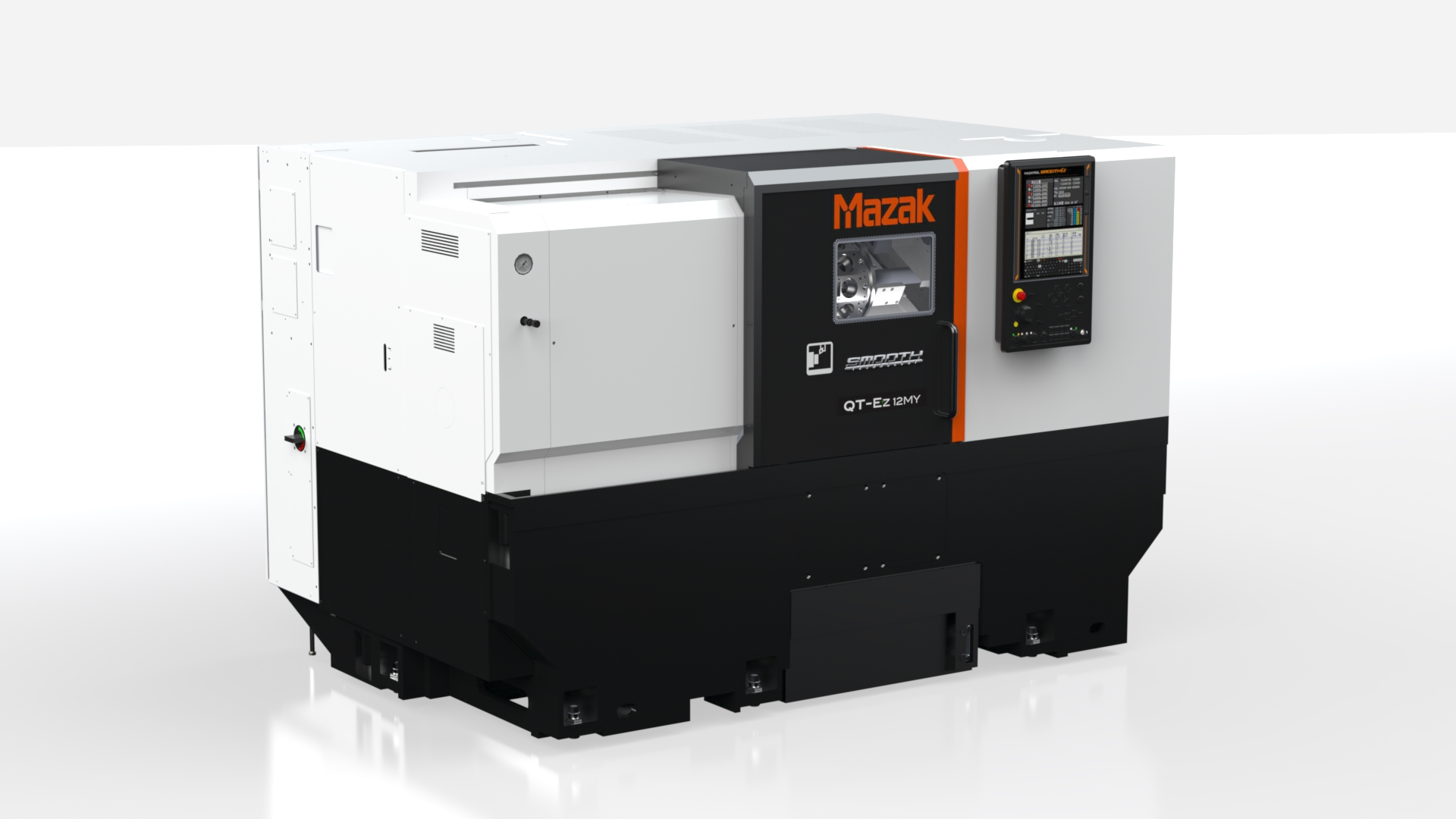 Mazak will feature its QT-Ez 12MY multi-tasking chuck, mounted on a face plate or secured between centers and rotated while a cutting tool, normally a single-point tool, is fed into it along its periphery…" title="Workpiece is held in a chuck, mounted on a face plate or secured between centers and rotated while a cutting tool, normally a single-point tool, is fed into it along its periphery…" aria-label="Glossary: turning">turning center and VC-Ez 20 vertical milling and boring. Normally comes with an automatic toolchanger. See automatic toolchanger." title="CNC machine tool capable of drilling, reaming, tapping, milling and boring. Normally comes with an automatic toolchanger. See automatic toolchanger." aria-label="Glossary: machining center">machining center, both from the series of machines that the company says puts Mazak quality and reliability within reach for virtually any shop with productive, space-saving efficiency at an affordable price.