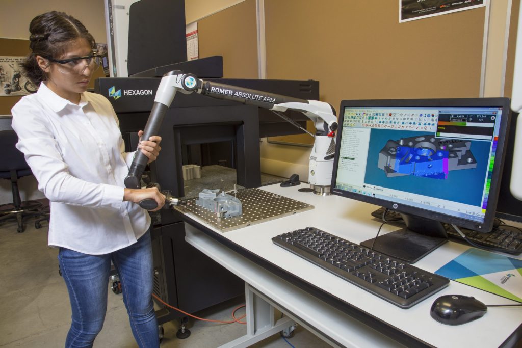 The metrology program is a natural extension of the machine technology curriculum already in place at Fullerton College. Course study will cover fundamental metrology concepts and offer hands-on usage of shop floor CMMs and portable measuring machines for practical measurement and inspection operations conducted in machine shops and manufacturing cells. The ROMER articulating arm is a versatile measurement tool designed to meet the needs of almost any measurement application, whether scanning or touch-probing. This portable CMM provides the foundation for Fullerton College's rigorous program of electives designed to prepare students for scientific research and today's data-driven manufacturing environments. The ROMER Absolute arm with integrated RS4 laser scanner will provide the means for precision 3D data capture across a range of surfaces and applications.
