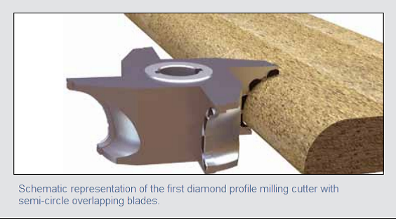 Manufactured this way, the world's first PCD cutting tool for machining wood materials (post-forming—coated as a kitchen cabinet plate) was manufactured as Z =4, but due to the necessary overlapping, this diamond milling cutter was really a Z-2 tool.