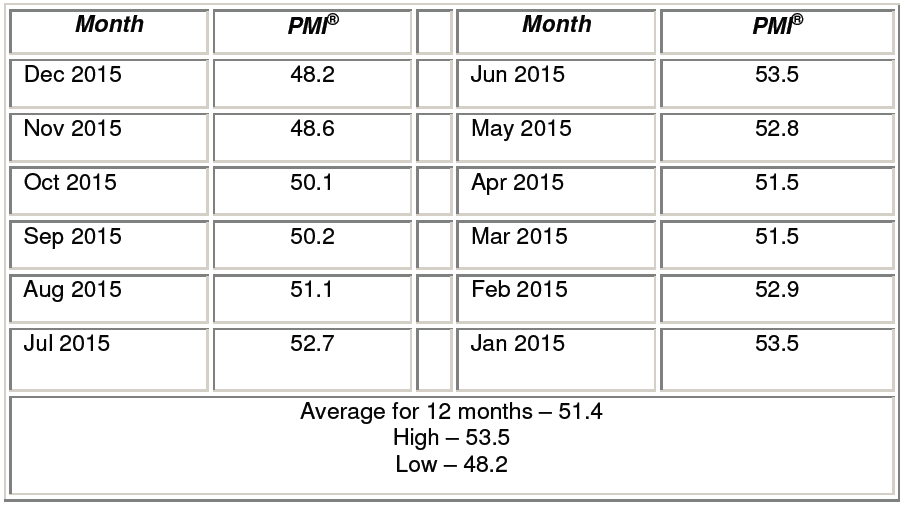 • The December PMI® registered 48.2 percent, a 0.4 percentage point decrease since the November reading of 48.6 percent.