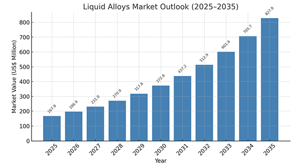 The liquid alloys market is projected to grow at a CAGR of 17.3% from 2024 to 2035, driven by increasing demand for high-performance materials in electronics, aerospace and additive manufacturing, according to Transparency Market Research, a consulting and market research firm in Wilmington, Delaware. The market is segmented by alloy type, application, melting/casting technology and geographic region. Key players include Indium Corporation, Texa Metals & Alloys Pvt. Ltd. and Liquidmetal Technologies.