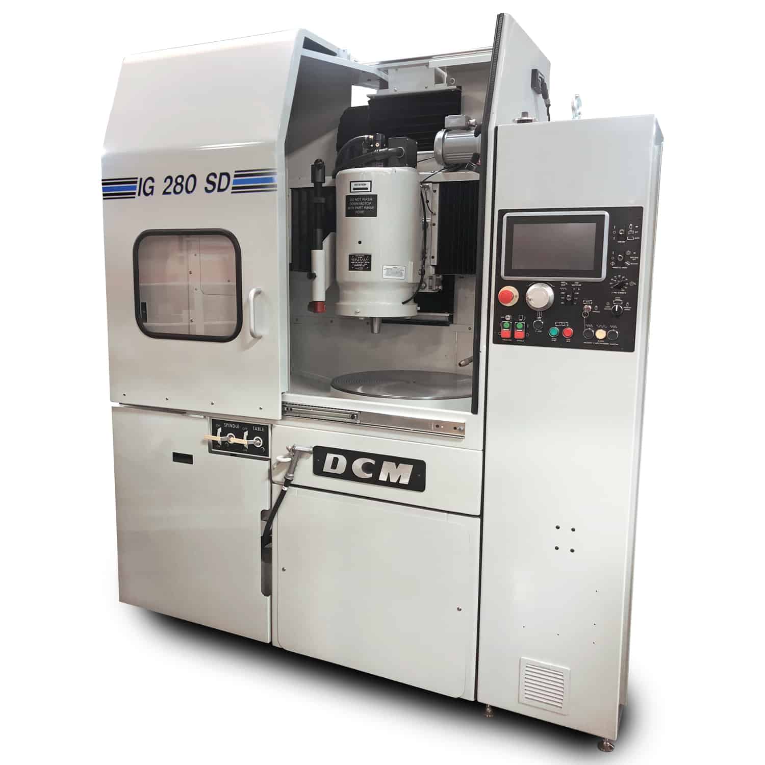 For example, rotary units such as DCM Tech's IG 280 SD, with a 24" variable speed table and 20HP variable speed grinding spindle motor, make it possible for virtually anyone to successfully operate a unit. This model automates the initial contact between the abrasive wheel and part, which typically had to be finessed by the operator. With this updated option, advanced sensor technology detects vibration and can automatically fine-tune not only the pressure of the spindle motor but how quickly it moves the wheel down onto the part. When the machine senses the abrasive wheel has contacted the part, it begins the grind cycle automatically.