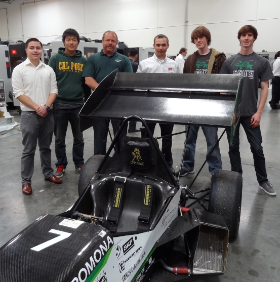 Cal Poly Pomona Engineering Students with Engineering Director Clifford Stover and SMTCL service technician Nathan LeMaster (3rd and 4th from the left) stand by one of the vehicles that Cal Poly Pomona will enter into competition. (Photo taken at SMTCL's Los Angeles Technical Center)Jerry McCarty, COO of SMTCL, explained that there is also a commitment from SMTCL to hire Cal Poly Students. "We have hired our first Cal Poly Pomona engineering student as an intern. We will provide him training in CNC machining and engineering," said McCarty. "We hope to hire a student every year and are looking forward to bringing on some of them as full-time employees when they graduate. This is a commitment to both our industry and the future of manufacturing in Southern California."