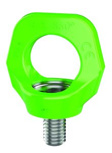 Hoist Eye 360 is a forged lifting eye that can be rotated 360° after installation, to align with the pulling direction. This compact assembly features a specially designed shoulder bolt, which rotates freely in the precisely machined lifting-eye body and is held captive by a retaining ring.