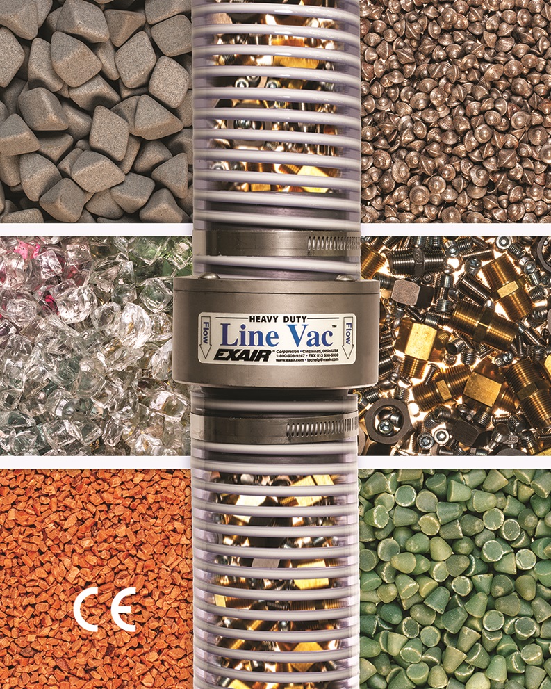 EXAIR's new 2-1/2 inch and 3 inch Heavy Duty Line Vacs are powerful in-line conveyors that transport high volumes of material through ordinary hose or tube. Designed for rugged, industrial applications, Heavy Duty Line Vacs have a hardened alloy construction that prevent premature wear when transporting abrasive or heavy materials like shot blast, tumbling media or metal fittings.