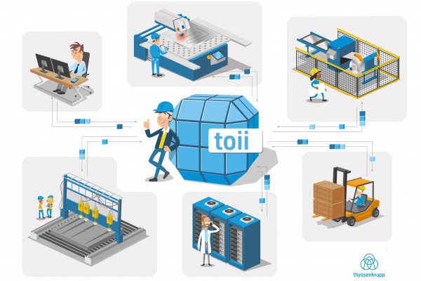 A milestone for the digital transformation: thyssenkrupp connects the machinery of the materials division via a new digital platform. Thanks to toii Industrial Internet of Things platform, all machines can communicate with each other. Due to predictive maintenance, the platform is also supposed to forecast the necessity of machine services in the future.