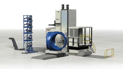MAG's new FTR 3500 floor-type horizontal boring mill (HBM) is a versatile, mid-sized job-shop machine, capable of a full 2 m reach inside parts with a ram-supported spindle.