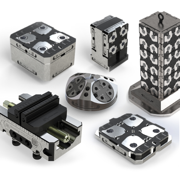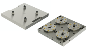 The first set of additions includes a choice of six different pneumatic subplates, each featuring pre-installed low pressure pneumatic clamping modules. The second set of additions is comprised of aluminum or steel fixture plates with pre-installed pull-studs.