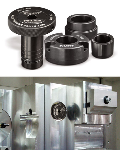 Machining center utilization improves significantly using the new Kurt PinLock system. It enables machining of multiple parts per load while reducing setup time.