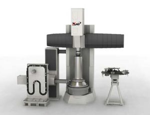A new sidehead option on MAG vertical turning centers (VTCs) utilizes a 250-mm-square (10 inch) ram to deliver 34,000 N (7,600 pounds) thrust from the optimum angle for efficient turning of tall or flanged parts in vertical orientation.