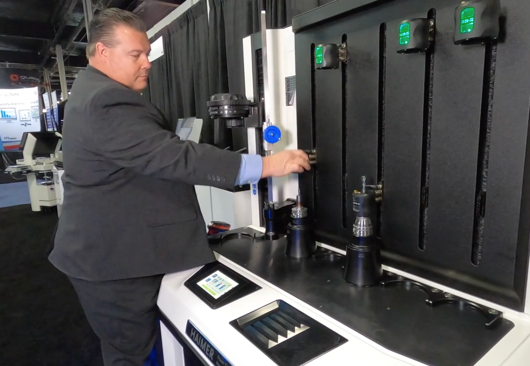 Steven Baier, vice president of sales for Haimer USA, demonstrated a couple of heat-shrink machines during Eastec 2023: the Power Clamp Premium i4.0 and the Power Clamp Air i4.0 Economic.n