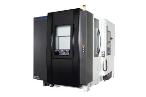 Mitsui Seiki's HPX63 II 4-axis horizontal machining center, an improved version of the company's proven HPX63 unit, features a 70% faster rapid feed rate of 54 m/min. that produces shorter cycle times and a 14% percent reduction in shop floor footprint (now 5,554mm x 3,530mm) to maximize manufacturing facility space.