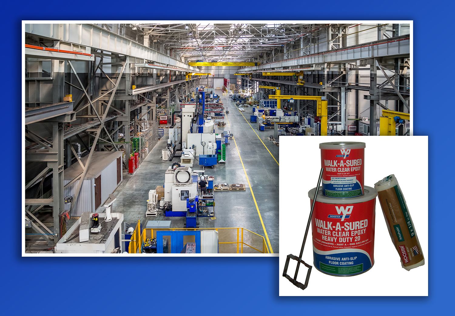 A member of the Walk-A-Sured® Water Clear Epoxy System, this eco-friendly, two-component epoxy system meets OSHA and ADA standards, and ASTM slip-resistance requirements. It contains 100% solids, with no solvents or VOCs, ensuring compatibility with previously installed coatings. Water, solvent and chemical resistant Walk-A-Sured® Water Clear HEAVYDUTY 20 contains polymer grit which gives the coating long-lasting added traction. It is ideal for use on industrial floors by machining centers and other oil-prone areas, in auto service stations where oil and grease are common, in ski resorts where floors are normally wet, and other manufacturing/industrial/commercial environments. n