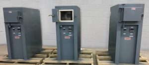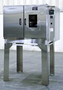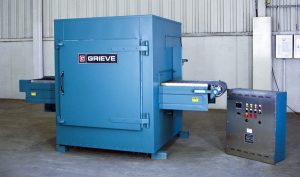 No. 807 is a cooling chamber from Grieve, currently used for cooling oven trucks of steel parts at the customer's facility. Workspace dimensions of this cooling chamber measure 84" W x 96" D x 72" H. 7,000-cfm, 7.5-hp, remote-mounted exhaust blower is used to pull room air through load and exhaust.