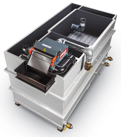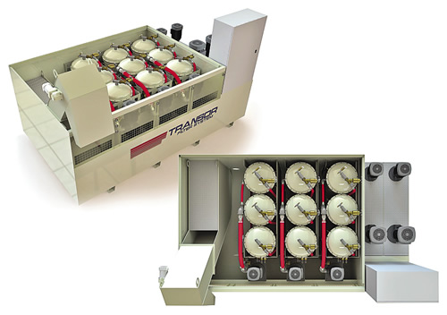 Transor Filter USA offers a line of central oil filtration systems for tool and cutter grinders. The units can be expanded by adding a filter module that consists of three filter vessels, filter pump and plumbing. Model V9 can service up to 10 grinders, and the system can incorporate three additional machines by adding a module. The systems filter to a 1µm level, control oil temperature and automate sludge handling.