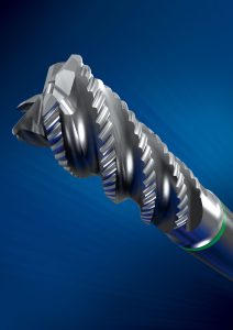 The new GARANT MasterSteel SlotMachine from the Hoffmann Group is a solid-carbide roughing endmill, which achieves high feed rates when slot milling from solid steel. The innovative knuckle form profile produces extremely compact swarf. Therefore, the Hoffmann Group was able to construct the milling cutter with five cutting edges. As a result, at a constant feed rate per tooth the new five-edge end mill achieves 25 percent higher process efficiency than a classic four-edge endmill.
