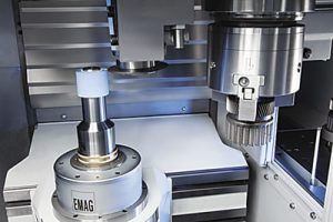 EMAG LLC's VLC 100 G vertical grinding center is for chucked components up to 100mm in diameter. The machine can use its onboard pickup system to load itself, and while one part is being machined, the operator or automation system is putting workpieces on the conveyor belt. This reduces idle time and increases output, according to the company. The vertical design ensures grinding sludge falls to the bottom of the machine unhindered, where it is removed from the machine.