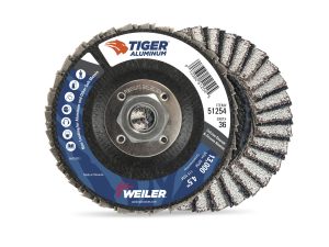 Because aluminum has a much lower melting temperature than other metals, keeping aluminum cool while grinding and finishing is a big challenge for welders and fabricators. The Blue-Kote disc cloth's net structure resists clogging on soft materials, and its sanded surface stays cooler and avoids burning the work surface.