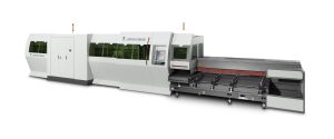 The LT722D, available with a 2.5kW Co2 laser source, can cut mild steel, stainless steel, and aluminum (some alloys). The LT Fiber EVO, available with a 2 or 3kW fiber laser, can also cut these materials as well as copper, brass and galvanized steel. Both versions handle bar weights up to 10.2 lb/ft (15 kg/m) and loading lengths of either 21' or 28' (6.5 or 8.5m) and unloading lengths of 11.5", 15" or 21" (3.5, 4.5 or 6.5m).
