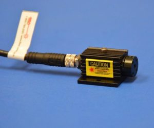 The FPL is a very low profile (20mm high) flat pack mounting for size constrained applications. The base is 30mm square, and the laser housing is 18mm x 18mm. With the extended laser unit, the overall length is 45mm. The FPL laser diode module has been fitted with two different mounting options: The 1- ¼-20 threaded mounting hole in the center of the base, or two M4 / 9/16" holes for through base mounting.