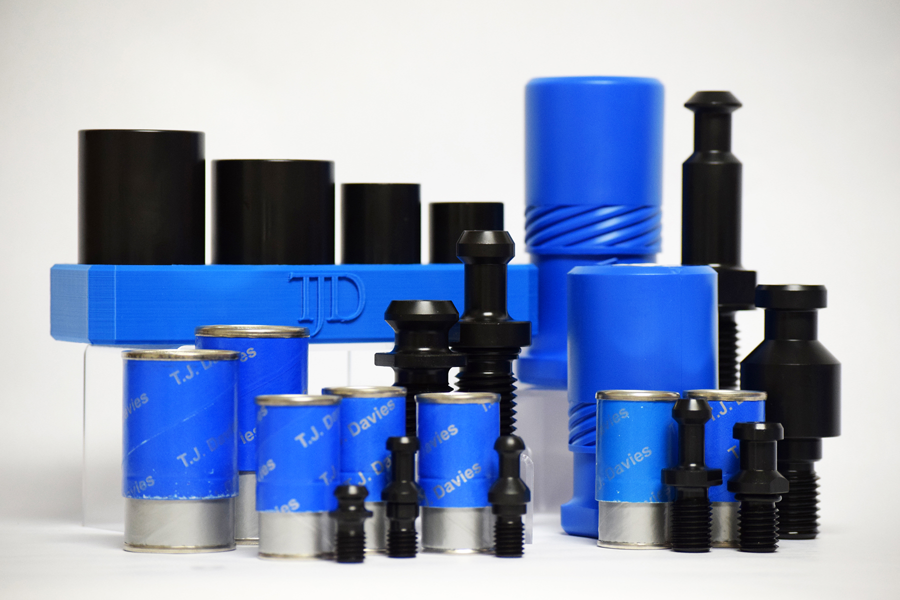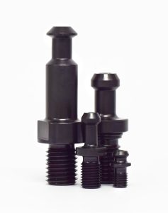 All TJ Davies custom retention knobs are manufactured from American-made 8620 alloy steel which has a high tensile strength to withstand strong centrifugal force, high load force, high feed rate, and difficult to machine material. All knobs are machined in-house with single point threading to Imperial (Class 2A UNC) or Metric (Class G6) standards. After threading is completed, each component is heat treated to 58-62 HRC then treated with hot black oxide to military specifications for protection against corrosion. Each retention knob is magnetic particle tested and then pull tested to 2.5 times the pulling force of the drawbar it is designed for.