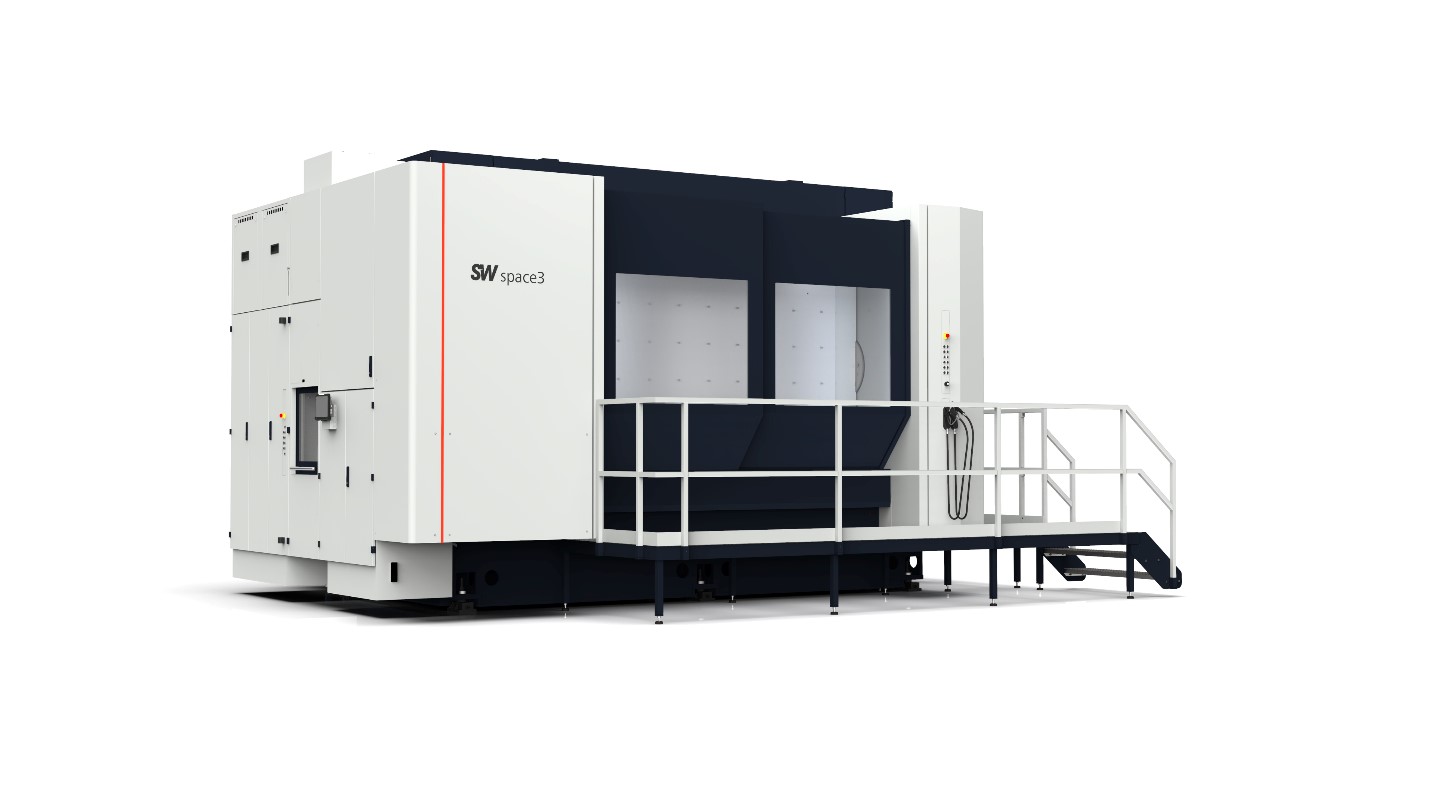 With an installation of footprint of 25.3m2, the machine is the largest in SW's repertoire. It features a working rage of 3,000 x 1,800 x 875 mm on the X-, Y- and Z-axes respectively. On each of these axes, the HSK 63 spindle is able to reach a rapid traverse of 120 m/min, with a chip to chip time of 4-4.25s (depending on which optional features a customer selects). So not only is the machine capable of machining large structural components made of light metal material such as battery housings and car chassis bodies that are in such high demand in the industry – but it does so at speeds much faster than anything offered by the competition.