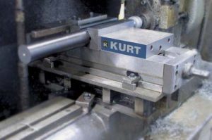 Self-centering vises from Kurt Manufacturing Co., Industrial Products Div., improve machining center productivity by positioning and clamping workpieces precisely and quickly on a defined symmetrical axis.