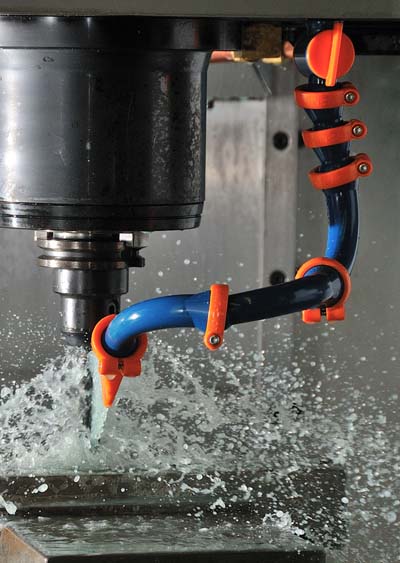 LOC-LINE Adjustable Hose System, manufactured by Lockwood Products Inc., has developed a new hose option for moderate pressure applications. The new ½" Extended Elbow when combined with Extended Elements and Element Clamps, allow the design of complete coolant hoses for higher volumes and increased pressures while maintaining precise positioning.