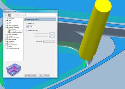 PowerMILL's new stock engagement technology can also be employed with all of the system's finishing and rest-finishing strategies so ensuring that the safest-possible toolpaths are run on the machine at all stages. The key to this more comprehensive solution is the accuracy of the stock models produced within PowerMILL after each machining stage has been completed. These models give a precise representation of the material still remaining on the part and are used to ensure that the cutter is never asked to remove more material than it can safely cut. At the same time, the stock models also ensure that toolpaths are not produced where there is no material remaining so the machine tool is never left cutting air.