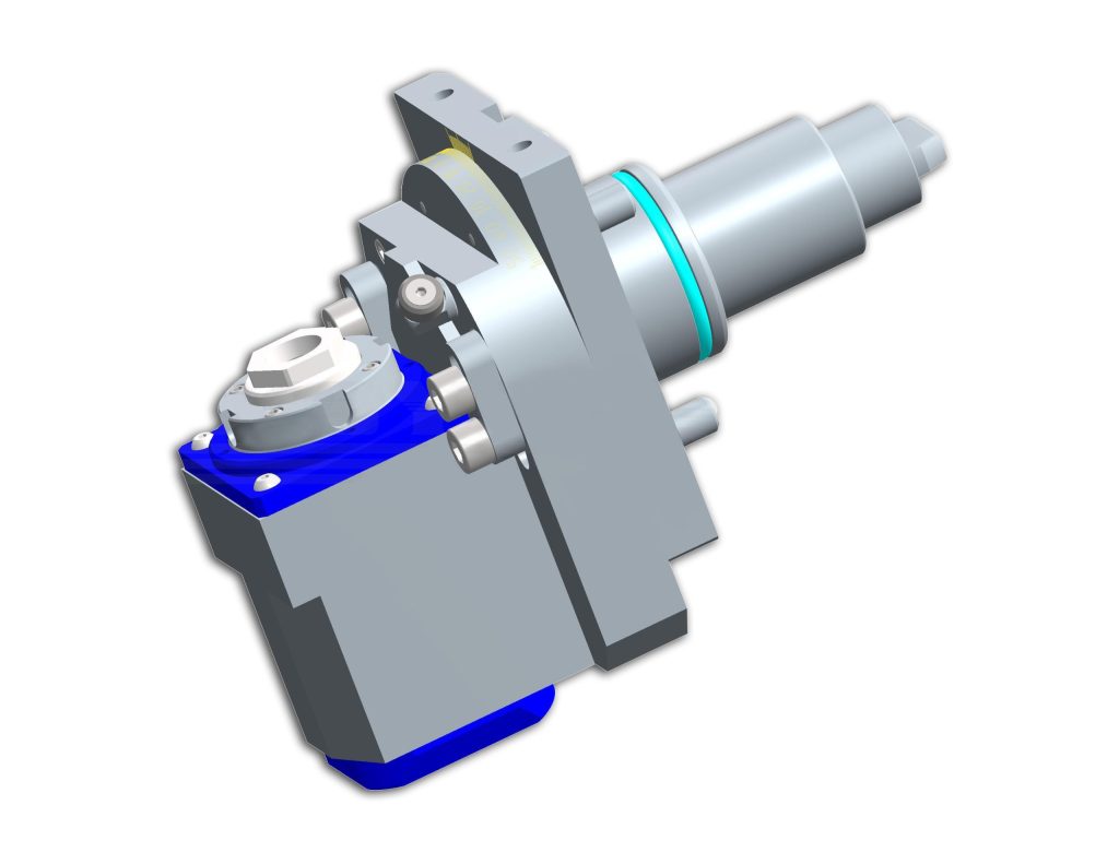With conventional live tooling, cutting tools on turning centers can machine parts only from a horizontal position. Thus, the gear skiving operation would require either a dedicated gear skiving machine or a full 5-axis milling and turning machine. EXSYS's innovative drilling and milling head enables shops to achieve the angled positions necessary for gear skiving and for the creation of integral splines.