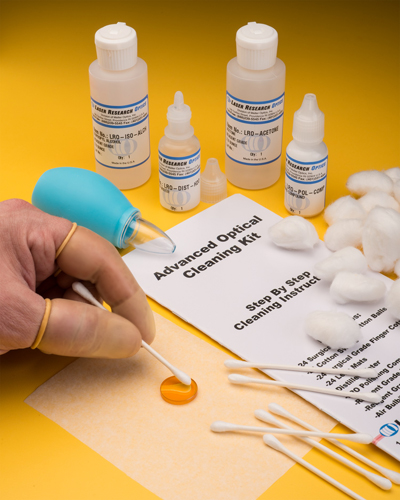 An advanced optical cleaning kit for properly cleaning CO2 laser optics and other types of lenses, mirrors, and windows subjected to contaminants is available from Laser Research Optics.