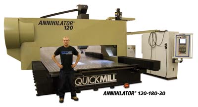 Quickmill has introduced the Annihilator Series of Gantry Machining Centers to the metal cutting industry. Increasing demands have been placed on production in today's marketplace. Increased productivity, reduced downtime, and improved capabilities have been the driving force behind the development of the newest addition to the Quickmill product line.