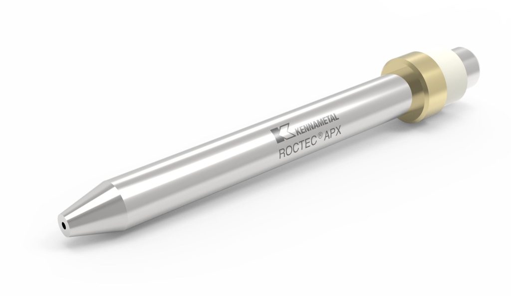 Using APX series nozzles, waterjet shops can take on even more challenging, complex jobs or run at faster production speeds or longer production periods. It also enables customers to better integrate technology advancements, including advances in waterjet pumps and cutting head technology. In addition, since APX nozzles are based on the original ROCTEC technology that has been the industry standard for over 20 years, they exhibit the predictable and consistent operating life for which Kennametal ROCTEC nozzles are known.