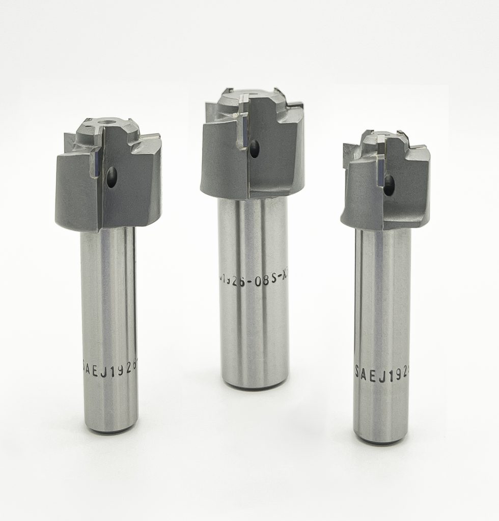 The AS5202-X will cut the required spot face and counterbore only; it does not cut the thread minor diameter. A coolant hole to each flute aids with increased chip evacuation, higher speeds and feeds, and longer tool life. The polished flute face optimizes performance for a smoother surface finish. The body of the port tool is made of heat- treated alloy steel and the brazed inserts are made of premium quality sub-micron carbide.