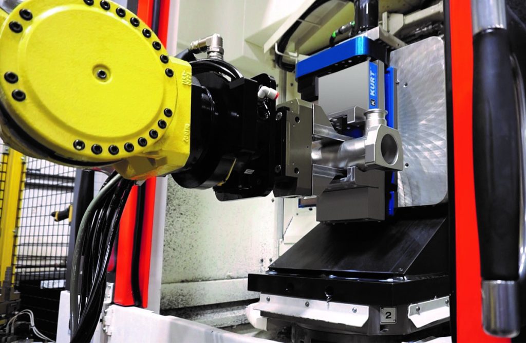 When an equipment manufacturer wanted to automate part clamping for a high-volume casting to be machined in a robot attended machining cell they turned to Kurt Workholding custom engineers for support. After reviewing the initial machining cell and part requirements, Kurt engineers drew upon past workholding experience and designs along with some new developing ideas in air powering workholding systems.