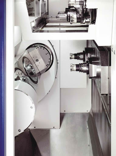 Schwäbische Werkzeugmaschinen GmbH's BA 322 twin-spindle machining center from EMAG LLC USA has a 300mm distance between the two spindles, as well as two worktables.