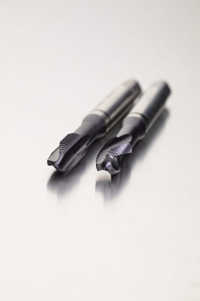 Available in spiral point (E816, E817, E916, E917) and spiral-flute (E805, E806, E905, E906) geometries for through- and blind-hole threading, the new taps provide high performance and process security in hardened and tempered materials below 45 HRC.