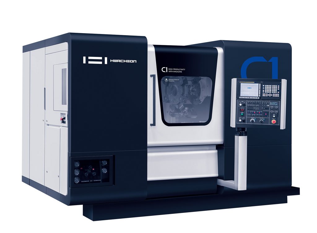 Hwacheon Machinery America Inc. introduces the C1 multiple-process turning center. Half turning center, half toolchanger. See automatic toolchanger." title="CNC machine tool capable of drilling, reaming, tapping, milling and boring. Normally comes with an automatic toolchanger. See automatic toolchanger." aria-label="Glossary: machining center">machining center (Y- and C-axis control), the C1 can completely manufacture parts with complicated shapes in a single chucking operation.