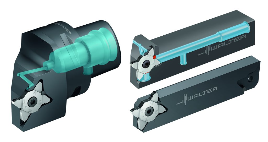 With the new Walter Capto monoblock tools (C3–C6), the MX system can now also be used on machines with Capto interfaces. In addition, new parting blades are introduced to work with automatic lathes and multiple-spindle machines. Walter has completed the range with new grooving inserts and toolholders for larger insert widths. Where previously only 0.031 in. (0.80 mm) to a maximum of 0.128 in. (3.25 mm) were possible, the insert width now ranges up to 0.222 in. (5.65 mm)—including the very common dimensions of 0.125 in. (3.18. 0.157 in (4 mm) and 0.196 (5 mm). Maximum cutting depth is 0.24 in. (6 mm).