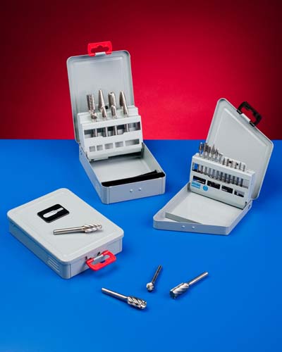 Three new carbide bur kits that are for specific tasks and come packaged in metal storage boxes to fit into a machinist's toolbox are being introduced by Rex-Cut Products Inc.
