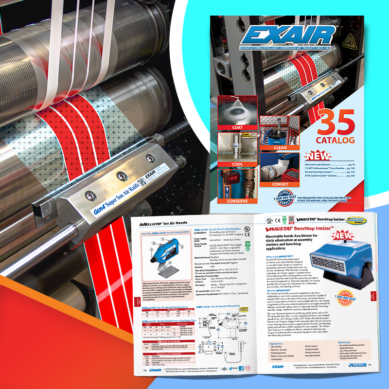 The demands of the average manufacturing process are constantly evolving, and it becomes increasingly important to understand how to best provide safety and efficiency to unique environments. It's for this reason that EXAIR is delighted to present the new Catalog 35; a full-color technical guide offering innovative solutions to common industrial conveying, cooling, cleaning, blowoff, drying, coating and static electricity problems. The expanded Catalog 35 houses new products, guides, research, certifications and many other helpful tools to assist customers in getting the most out of their manufacturing processes.